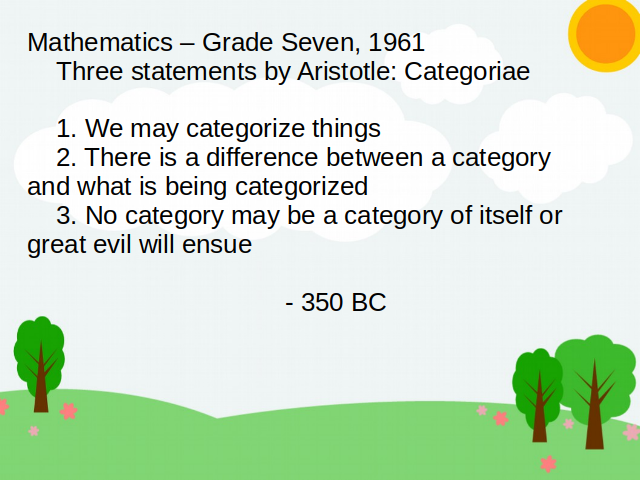 Always good to begin with Aristotle. This is prior to the establishment of the Axioms by Euclid.